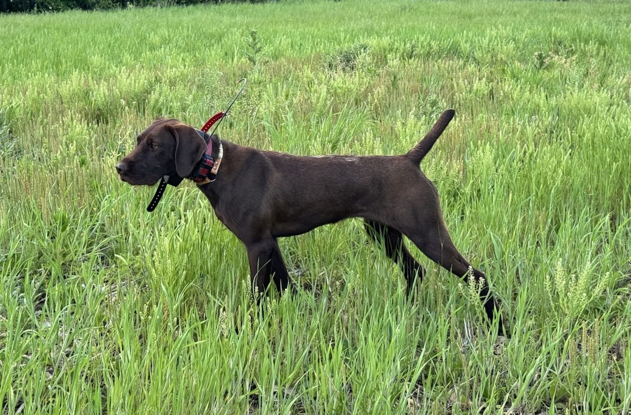 Stella is a female that we decided to add to our breeding program that we purchased from Jason Mix at Paladin Gundogs. She is the product of a breeding Jason Mix did with that female and his UT I male named Windy Sage’s Rudy Red. Stella is…